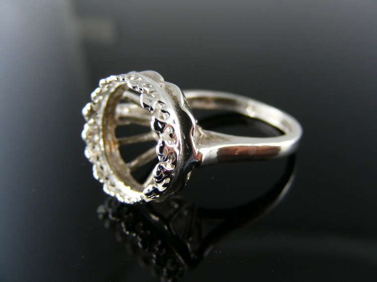 SETTING, STERLING SILVER FOR 12 MM. ROUND STONE #R142...SIZE 5.25