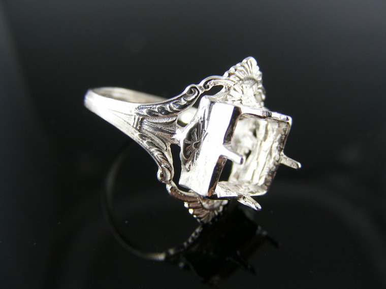 R3A\R3B ANTIQUE RING SETTING STERLING SILVER, SIZE 6.5, 8X8 MM SQUARE FACETED STONE