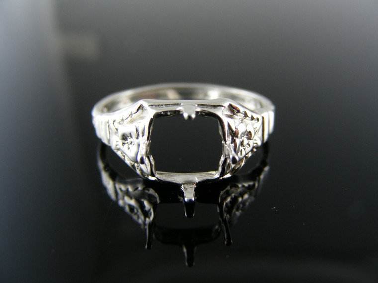 R41 STERLING SILVER RING SETTING, 6X6 MM SQUARE FACETED GEMSTONE,SIZE 7.25