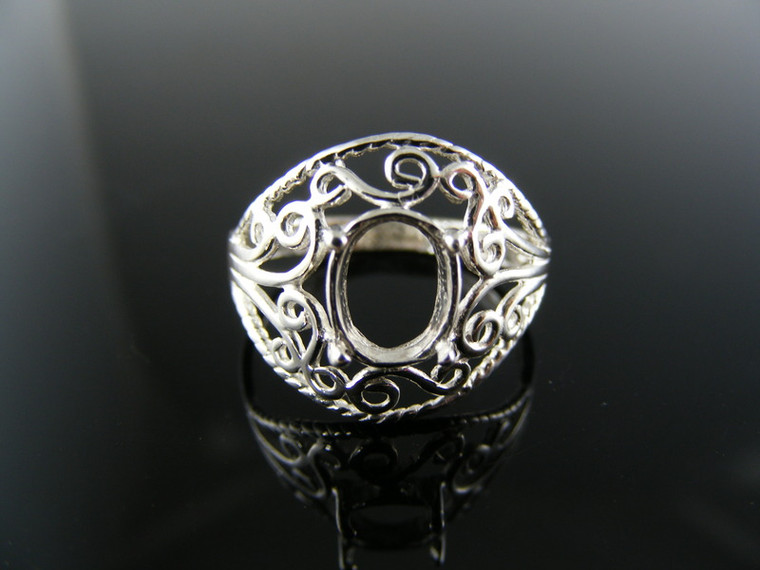 sterling silver ring setting, 8x6 mm oval faceted gemstone, size 6