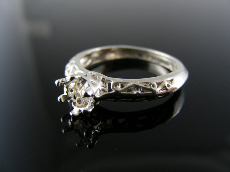 - R53 STERLING SILVER FILIGREE RING SETTING, 5 MM ROUND FACETED GEMSTONE, SIZE 5.25
