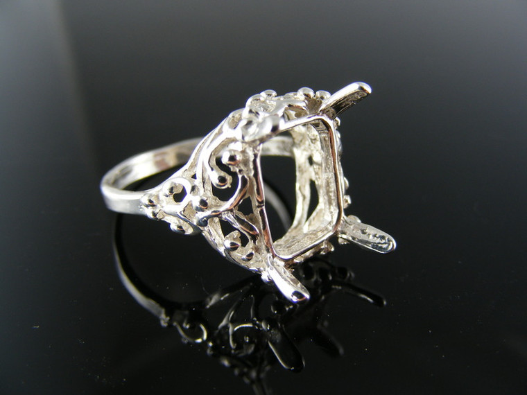 Loading... Please wait... sterling silver ring setting, 14x12 mm emerald cut gemstone