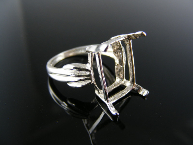 sterling silver ring setting, 12x10 mm emerald cut faceted gemstone