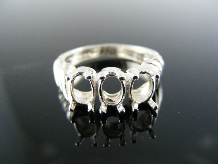 R84 STERLING SILVER RING SETTING, 3 - 6X4 MM OVAL FACETED GEMSTONE, SIZE 7
