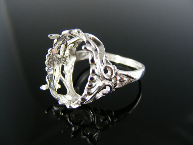 sterling silver ring setting, 18x13 mm oval faceted gemstone